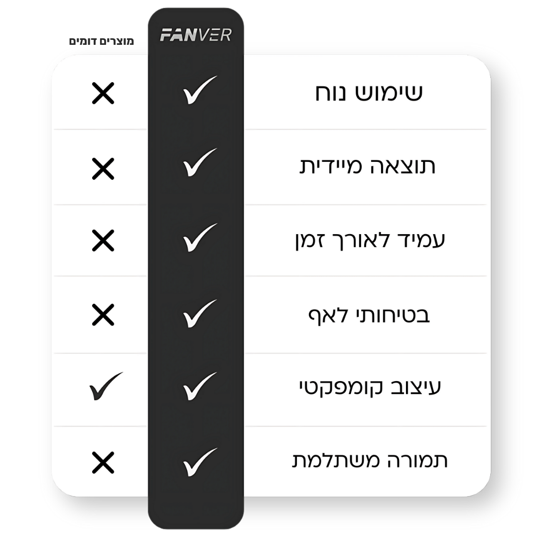 הרצועה המגנטית של FANVER פותחה במיוחד כדי לפתוח בעדינות את מעברי האוויר באף ולהחזיר נשימה טבעית וחלקה בזכות עיצוב חכם ומגנטים זעירים, הרצועה יוצרת פעולה עדינה שמרחיבה את הנחיריים ומשפרת את זרימת האוויר והתוצאה פחות עומס בזמן פעילות ספוטיבית, שינה או ביום-יום ותחושת קלילות מיידית בכל נשימה, לא מדובר במכשיר רפואי אלא בפתרון פיזיולוגי נוח אלגנטי ויעיל לשיפור איכות הנשימה שלך.