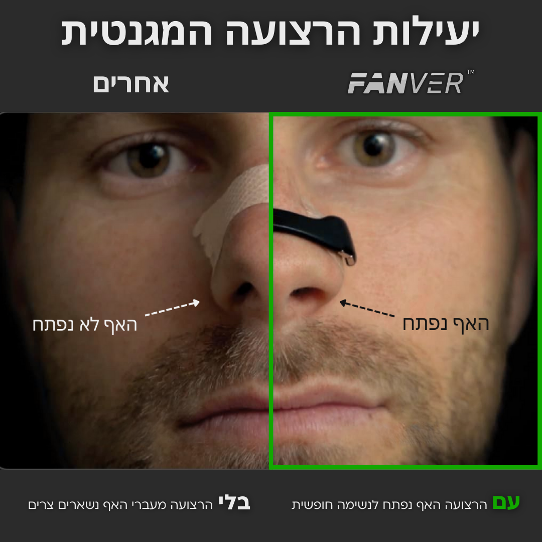 " הרצועה המגנטית של FANVER פותחה במיוחד כדי לשפר את זרימת האוויר ולהעניק נשימה טבעית וחופשית, שילוב בין חדשנות פיזיולוגית לניסיון מוכח שמחזיר לך חמצן וימים מלאי אנרגיה והתוצאות מדברות בעד עצמן "